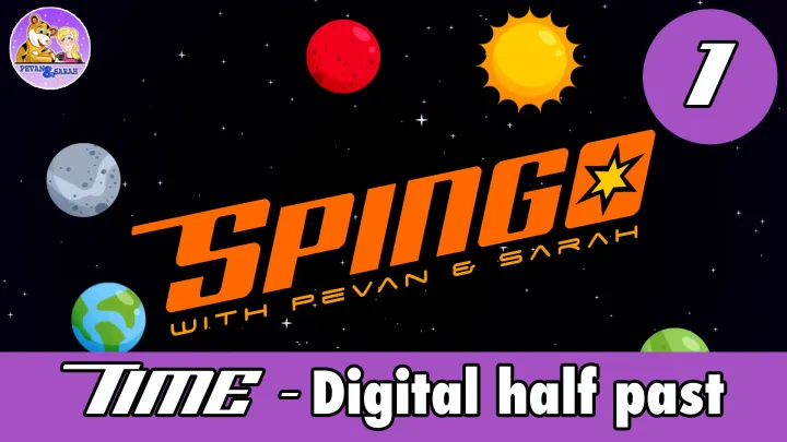 ☆ Spingo Time - Digital Half Past Ep.#1 ☆ Everyone loves a game of Bingo, but it's lots more fun when you play...IN SPACE! This video series has just made your life a whole lot easier. Let Pevan & Sarah run a game of Spingo for your class or small group activity. Simply provide your players with a Spingo card and 6 counters, then hit play and wait for someone to yell "Spingo!" Keep your kids engaged whilst they learn to identify the time on a clock. This video covers half past times on a digital clock. With five episodes and thirty playing cards, the winner is always someone new.