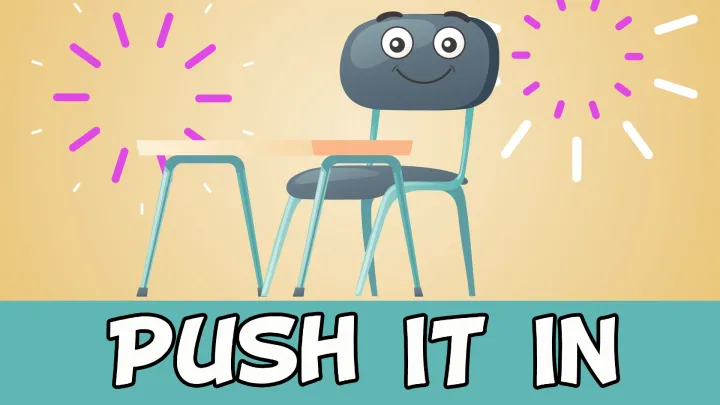 ☆ PUSH IT IN ☆ If teachers received a dollar for every time they uttered the words "push your chairs in", or cracked their knee on a protruding chair, we'd have some very rich teachers. Let Pevan & Sarah help with a catchy tune and a friendly reminder to push your chair in before your teacher goes crazy.